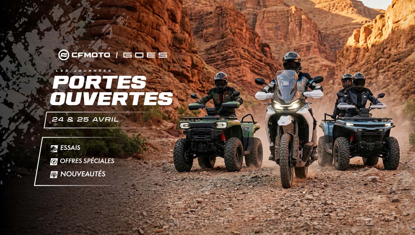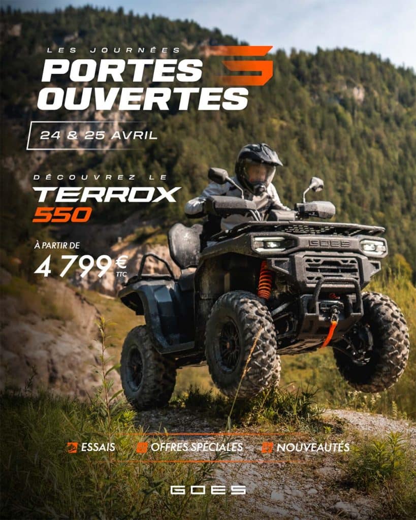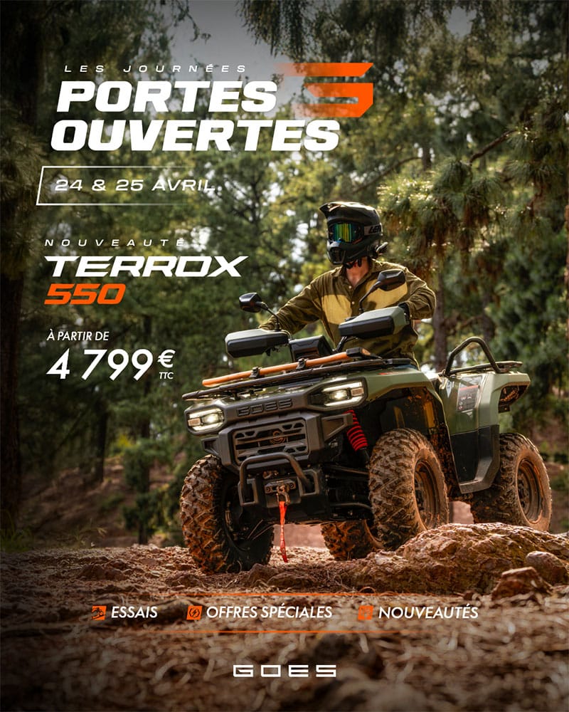 Les 24 et 25 avril, le réseau Goes organise deux journées portes ouvertes à l’échelle nationale. Ces deux jours sont l’occasion pour les professionnels comme pour les particuliers de venir découvrir la gamme Goes, d’échanger avec les équipes en concession et surtout d’essayer en conditions réelles la dernière grande nouveauté de la marque : le Terrox 550.